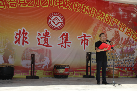 自治區非物質文化遺產保護中心朱鳳立書記擊鑼宣布“非遺集市”開市