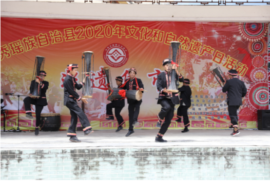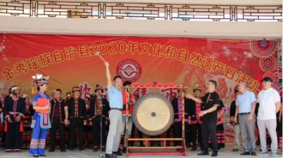 “擊鑼開市”“山歌傳情”“瑤醫問診”“吃樹葉豆腐”“跳黃泥鼓舞”,6月13日,廣西來賓市金秀瑤族自治縣2020年“文化和自然遺產日”——“非遺集市”活動在羅香鄉橫村瑤寨拉開序幕。廣西壯族自治區非物質文化遺產保護中心書記朱鳳立、金秀瑤族自治縣人民政府副縣長馬峰為“非遺”集市“擊鑼開市”。