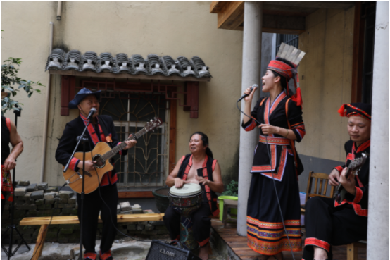 瑤族民間樂團——七彩鄉音全天候為游客演唱用瑤族傳統音樂元素創作的歌曲