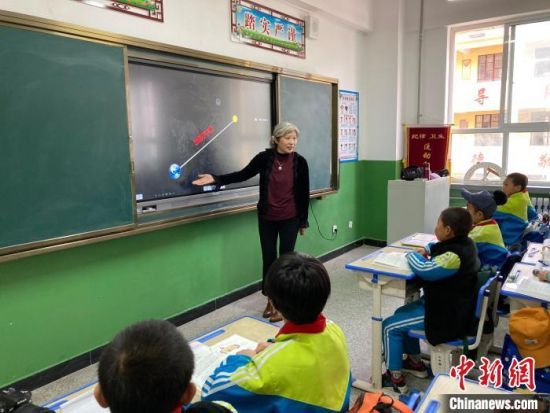 圖為天津市河西區平山道小學老師唐華,在莊浪縣第一小學支教,給學生上地理課。 (資料圖) 李順民 攝