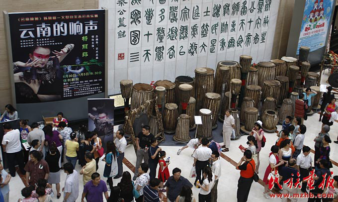 在《云南的響聲》巡演過程中,楊麗萍把她多年來在民族地區收集到的各種樂器也帶著做展覽,讓更多的人了解少數民族的文化(楊博 攝影)