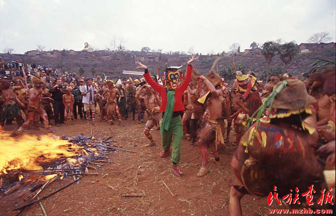 2000年后,楊麗萍將更多的精力投入到云南民族文化的挖掘整理中。圖為她在彝族祭火現場參與表演(民族畫報資料)