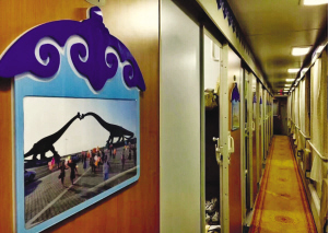 經(jīng)過(guò)全新整改后的列車,秉承“天地精華,大美麗江”主題,把納西族、白族等麗江少數(shù)民族代表性文化元素融入列車整體外裝和窗簾、地毯、臺(tái)布等內(nèi)部裝飾。小到窗簾紋飾,大到每一幅裝飾畫,都經(jīng)過(guò)了精挑細(xì)選,滲透了麗江文化,通過(guò)一車一景、一車一館的方式,把車廂打造成展示麗江各地優(yōu)美自然風(fēng)光和絢麗民族文化的長(zhǎng)廊。