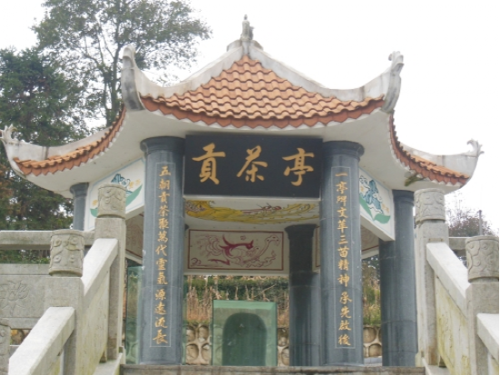云霧貢茶碑建于清乾隆五十五年(公元1790年),青石高1.1米,寬0.8米,厚0.1米,坐北朝南。碑文有228字,可辨認(rèn)的為219字。其中“仰望苗民雷阿虎”、“年年貢茶定數(shù)”以及“銀肆佰貳拾兩發(fā)交殷實(shí)之戶生復(fù)再年購(gòu)辦該處貢茶”等文字仍清晰可讀,云霧茶作為貢品早在元明時(shí)期就已開始,但真正列入貢茶,有據(jù)可查,都以此碑為證。此碑除了褲腳略有殘缺外,整體保存完好,經(jīng)縣、州、省兩次撥款維修保護(hù),從原址關(guān)口寨路旁至寨前丫口上。