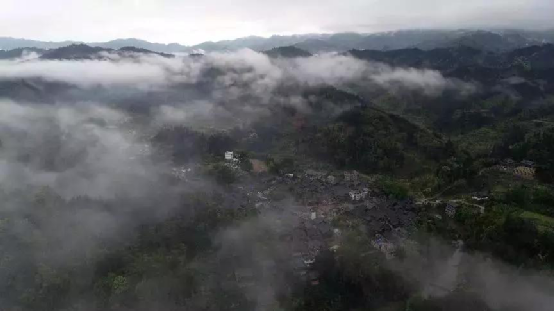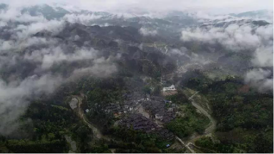 4月14日,無人機航拍的三江侗族自治縣洋溪鄉高露村中寨屯美景