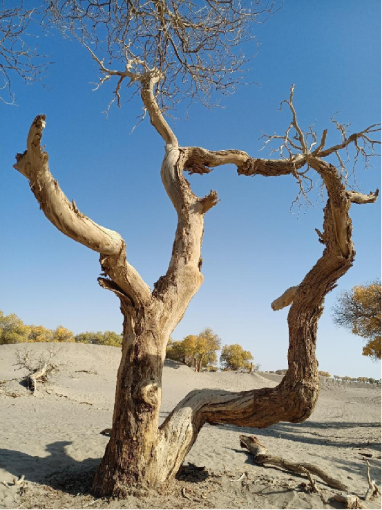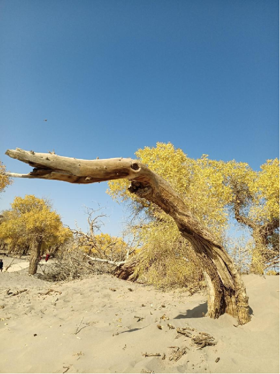 胡楊,又稱胡桐、英雄樹、異葉胡楊、異葉楊、水桐、三葉樹,是生長在沙漠中的樹種,它耐寒、耐旱、耐鹽堿、抗風沙,有很強的生命力。