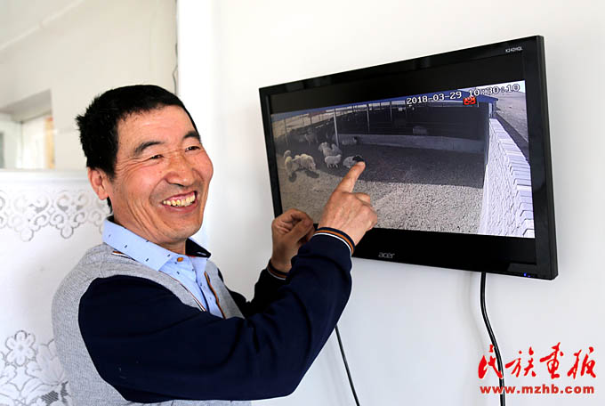 牧民朱寶忠利用監控器可隨時了解棚舍里羊群的情況
