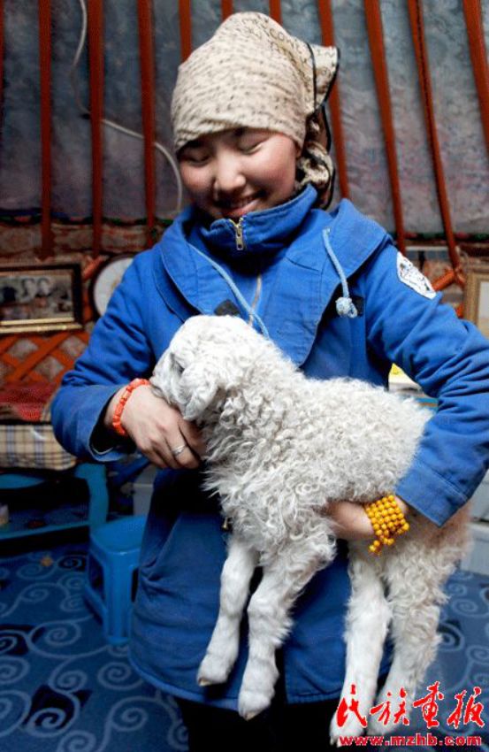 一些初次繁殖的母羊可能沒有經驗,不太會關照自己的孩子,牧民就把羊羔放在母羊身邊,不斷地唱歌感化母羊并最終成功;羊羔們吃飽了就隨時睡在草叢里,而羊群一直在前進,有的羊羔就會掉隊,牧民就不斷地對數,讓小羊起來找媽媽;一些羊羔夭折,牧人會就會把孤羔甚至是雙胞胎的一只交給失去孩子的母羊;實在無法解決的羊羔就會被帶到蒙古包里用奶瓶喂養。一些經典的蒙古長調就是以感化母羊的題材為元素。