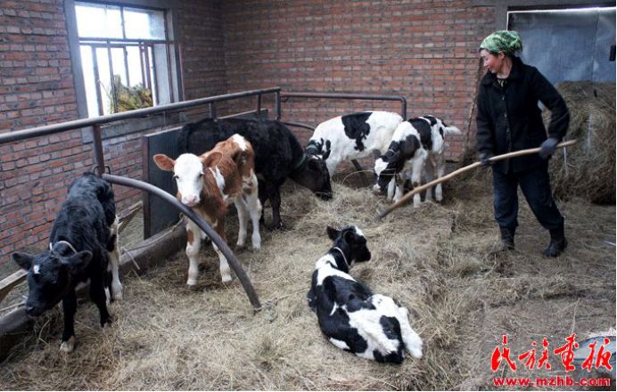 看著出生不久的牛犢 胡其勒滿心喜悅,她很喜歡給牛犢喂草。