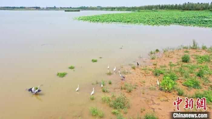盛夏時節,雨過天晴,美麗的南宮湖水波蕩漾,蒼鷺、白鷺、綠頭鴨等鳥類在此翔集,棲息覓食。河北省南宮市的南宮湖濕地公園,擁有3000多畝水面和52公里內外環水系,是河北南部依傍縣城最大的人工湖。近年,當地實施南宮湖水生態修復工程,昔日“藏污納垢,蚊蠅亂飛”的舊坑塘成為水清、岸綠、景美的生態湖、景觀湖。
