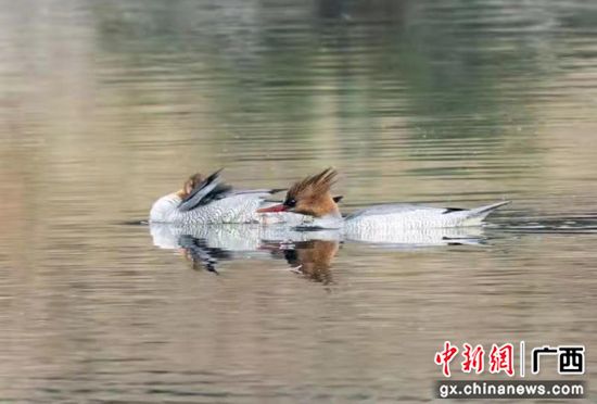 廣西荔浦市荔江流域首次發(fā)現(xiàn)國家一級保護動物:中華秋沙鴨。張德林 攝