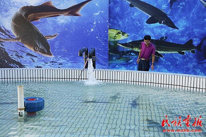 同江市赫哲族魚展館里養殖的鰉魚,這些鰉魚養大后會放歸自然。