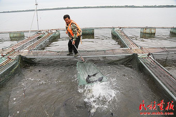 在黑龍江畔,通過網箱養魚做到既保證群眾的收入,又保護好黑龍江的魚類資源。