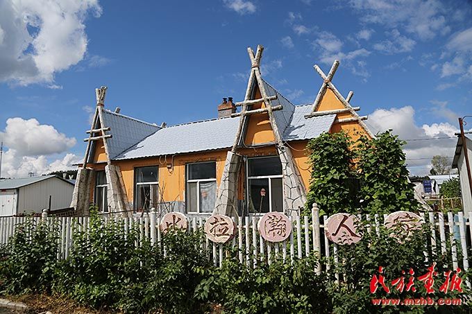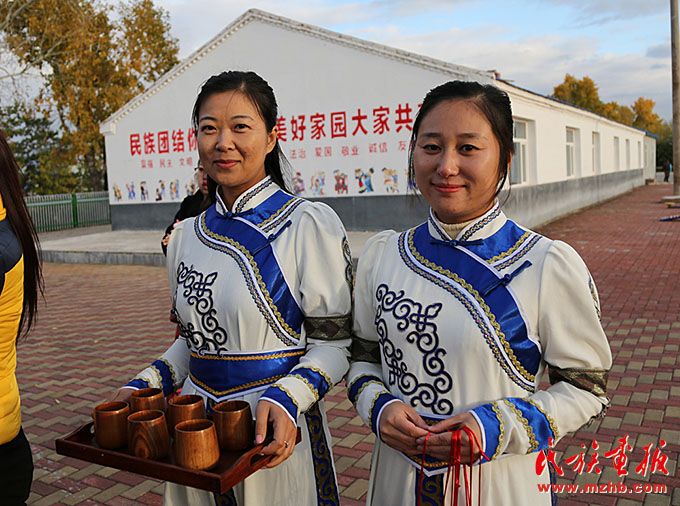 黑河市愛輝區坤河達斡爾族滿族鄉的達斡爾族群眾發展鄉村旅游。圖為村民用奶茶迎接賓朋。