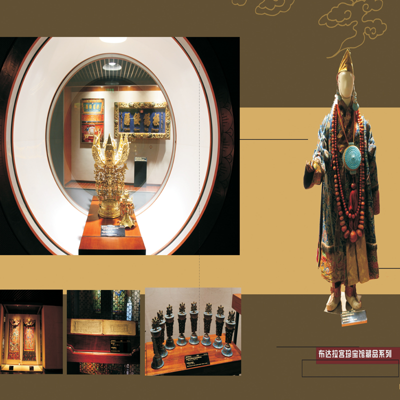 布達(dá)拉宮珍寶館展出宮藏文物200件左右,其中包括封誥、印鑒、禮品、文獻(xiàn)典籍、貝葉經(jīng)、佛像、唐卡、法器等。布達(dá)拉宮珍寶館有14世紀(jì)制造的“八瓣蓮花喜金剛壇城像”。2009年8月11日正式對外開放。