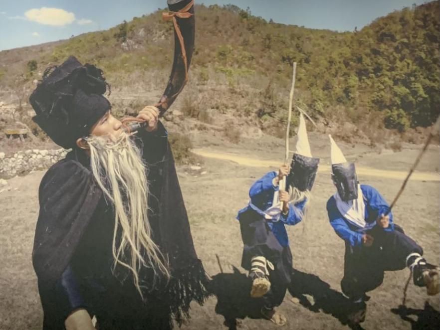 彝族男子正在進(jìn)行祭祀活動(許覬佳攝于貴州省博物館)
