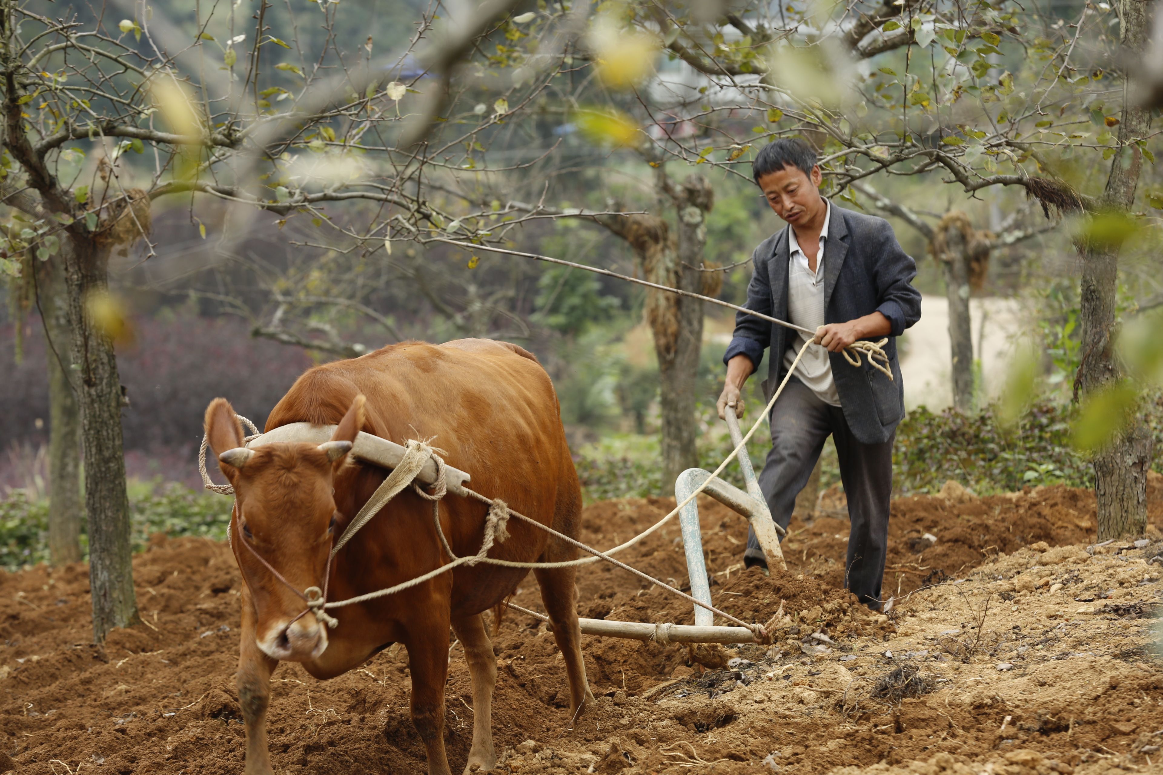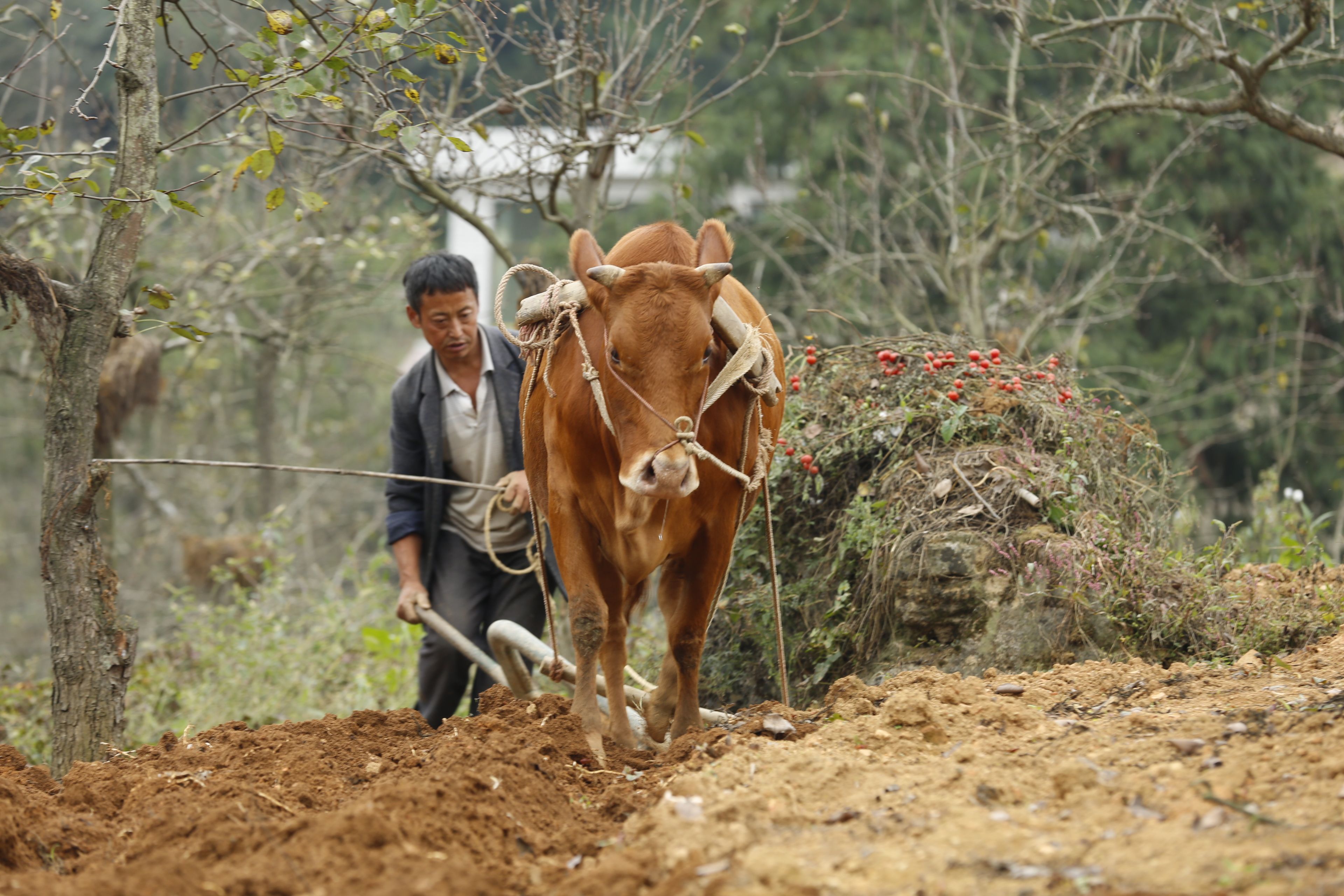 圖片說明:貴州貴陽苗族農作物種植-牛耕田